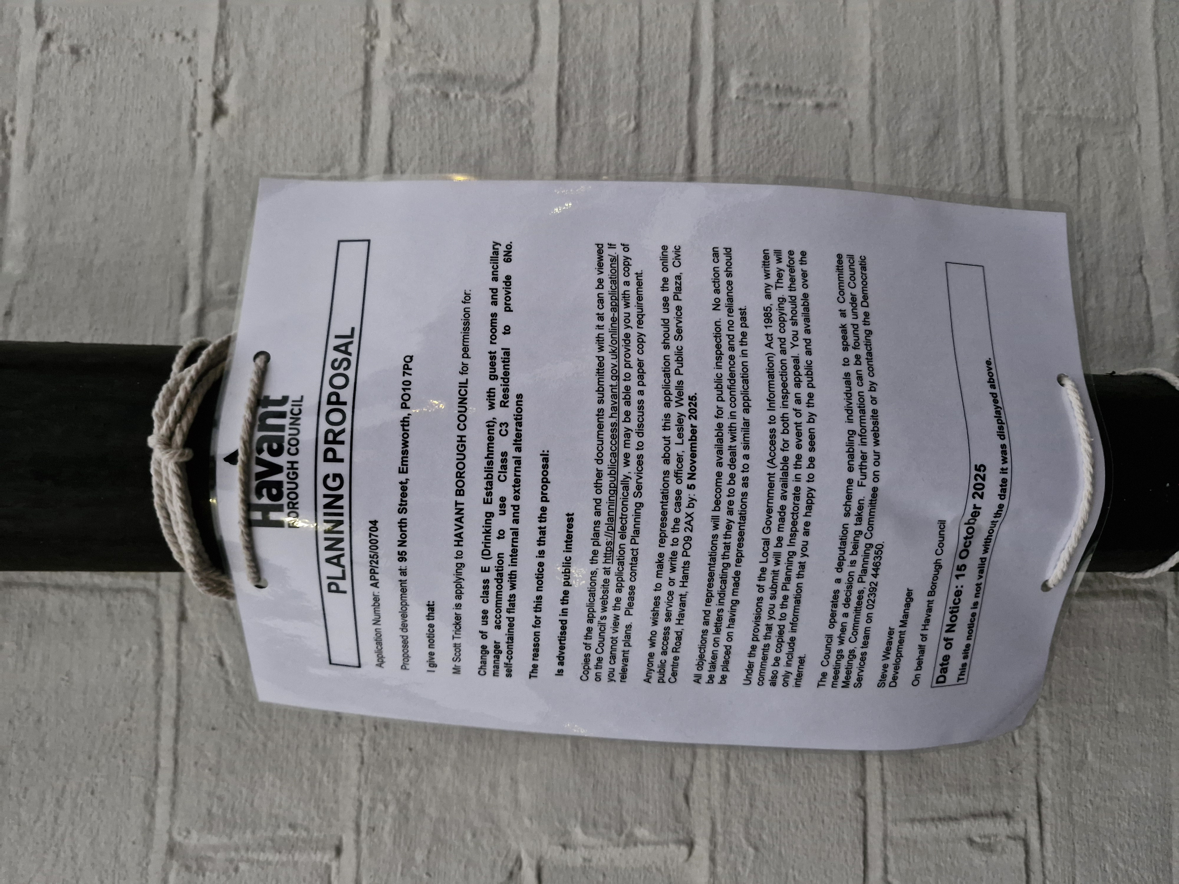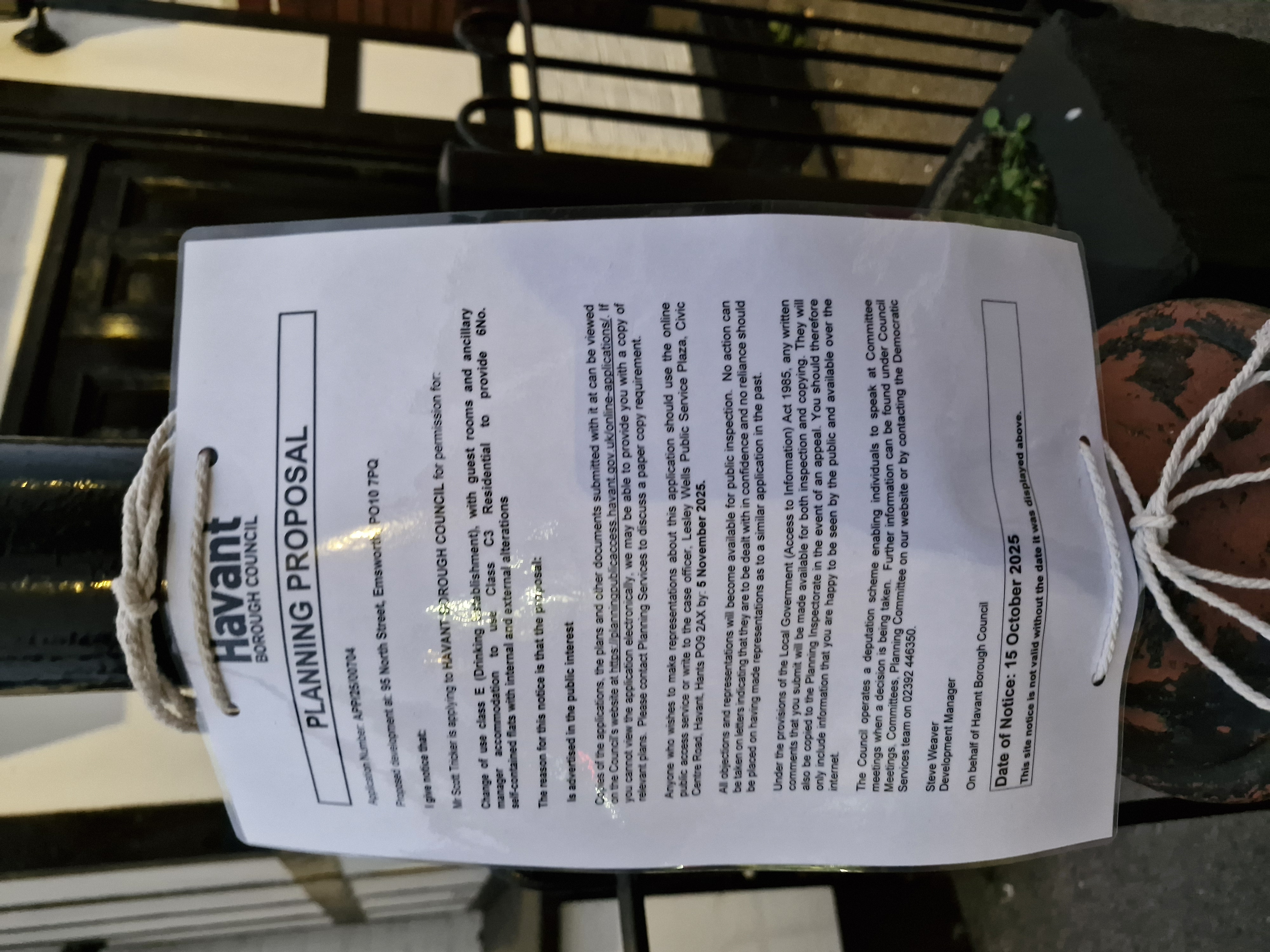 Reference APP/25/00704 Application type Full planning permission Site address 95 North Street, Emsworth, PO10 7PQ Description Change of use class E (Drinking Establishment), with guest rooms and ancillary manager accommodation to use Class C3 Residential to provide 6No. self-contained flats with internal and external alterations Status Recommendation Made