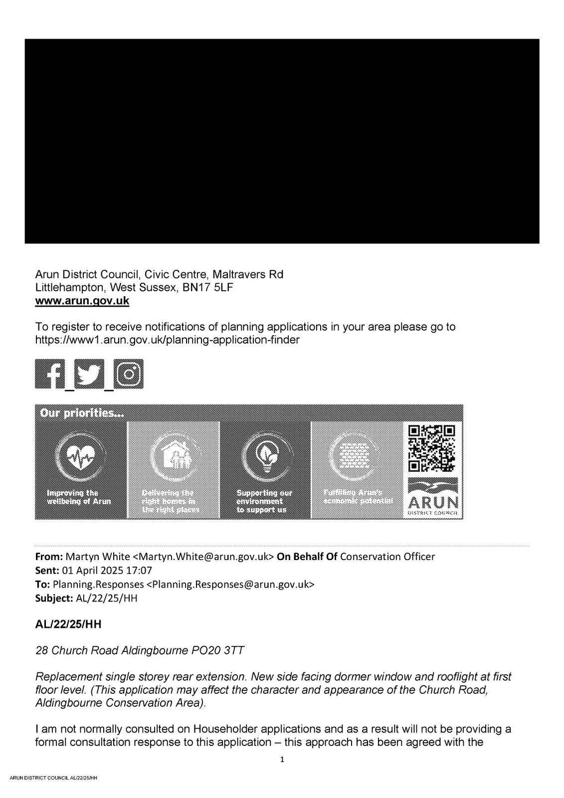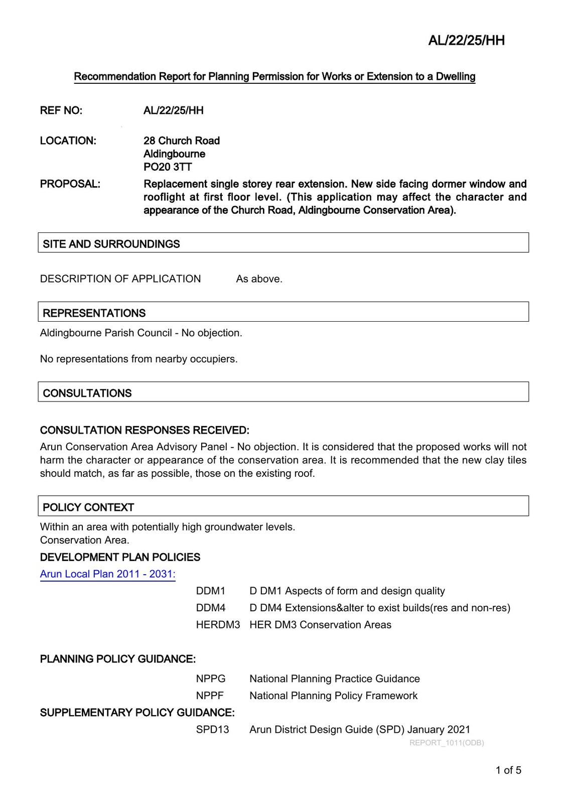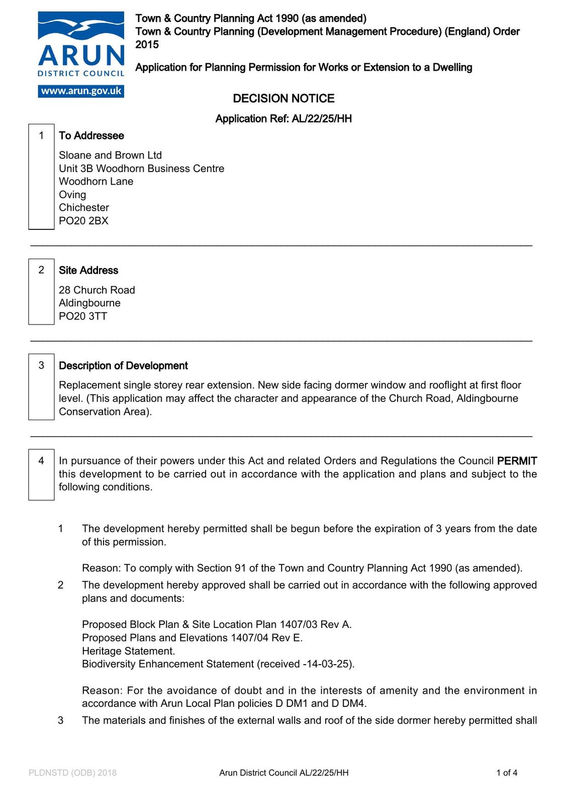Replacement single storey rear extension. New side facing dormer window and rooflight at first floor level. (This application may affect the character and appearance of the Church Road, Aldingbourne Conservation Area).