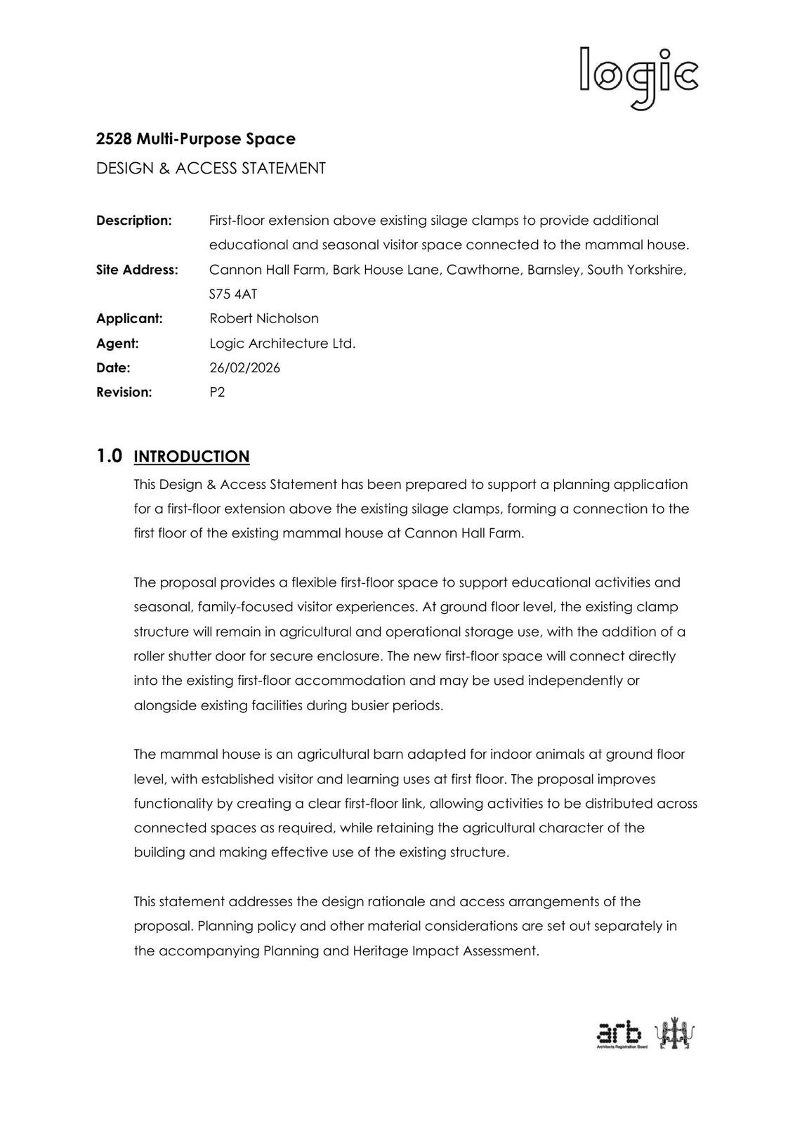 Erection of a mixed use barn at first floor level above the existing silage clamps, part-educational use (Class F1) and part-leisure use (Class E).