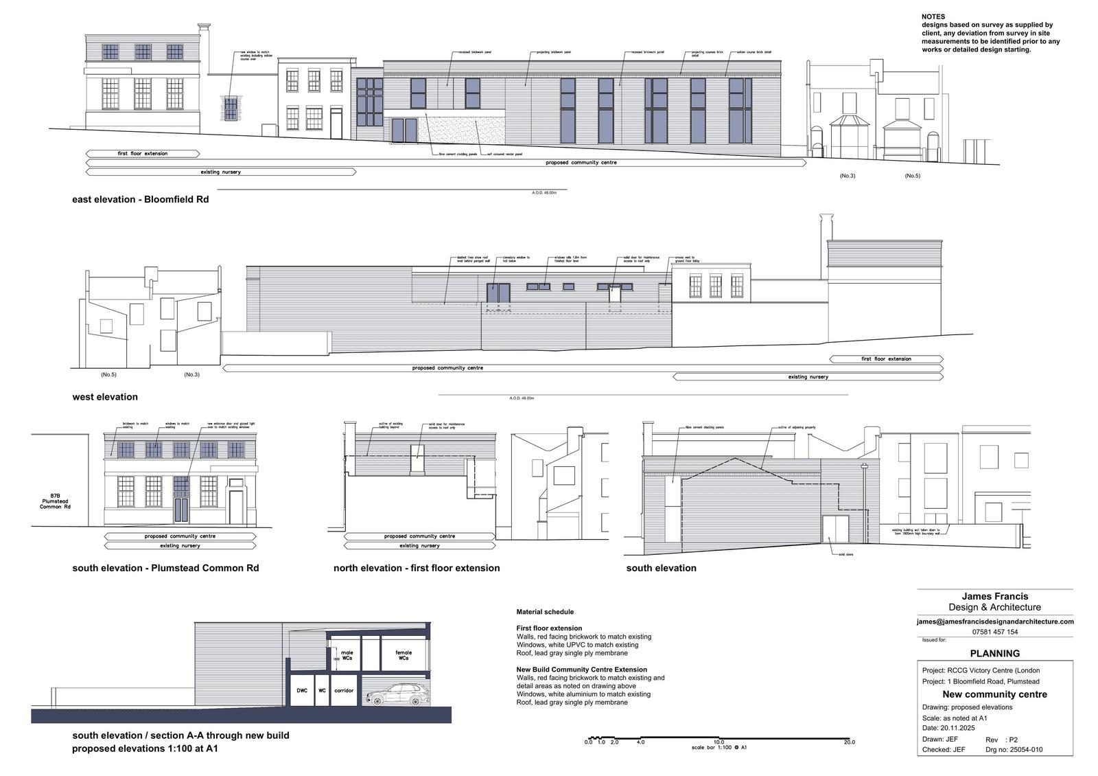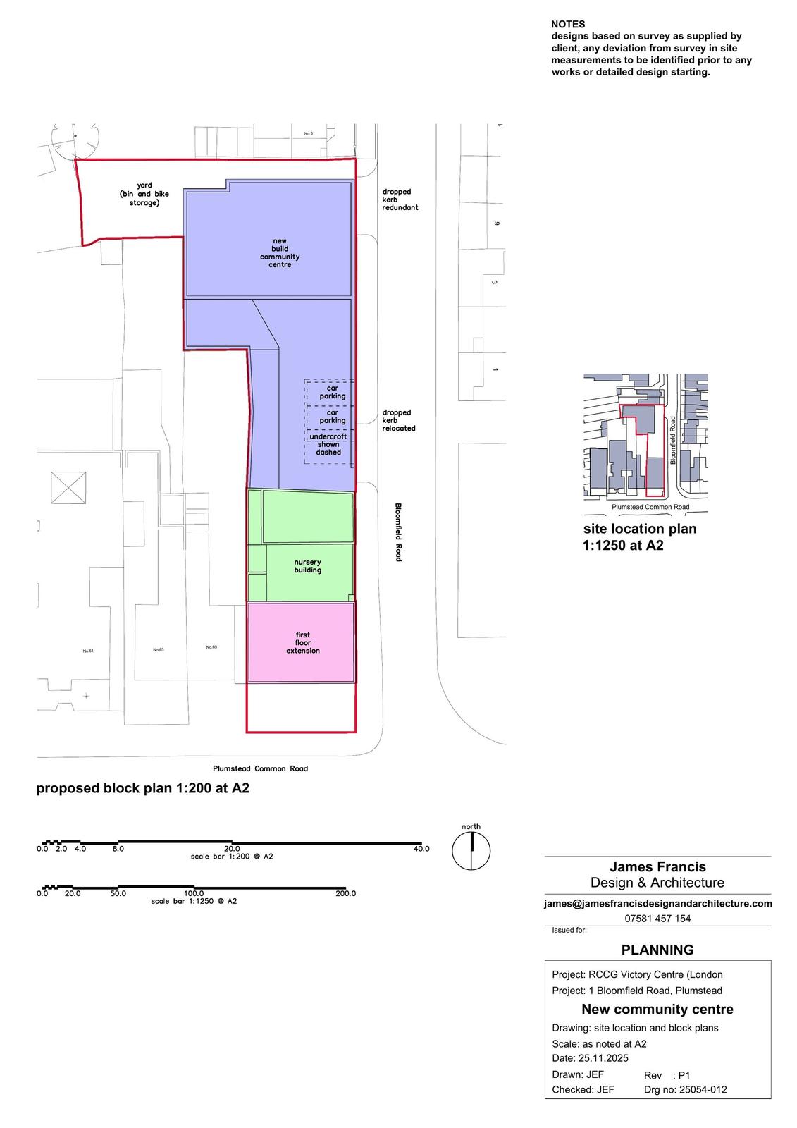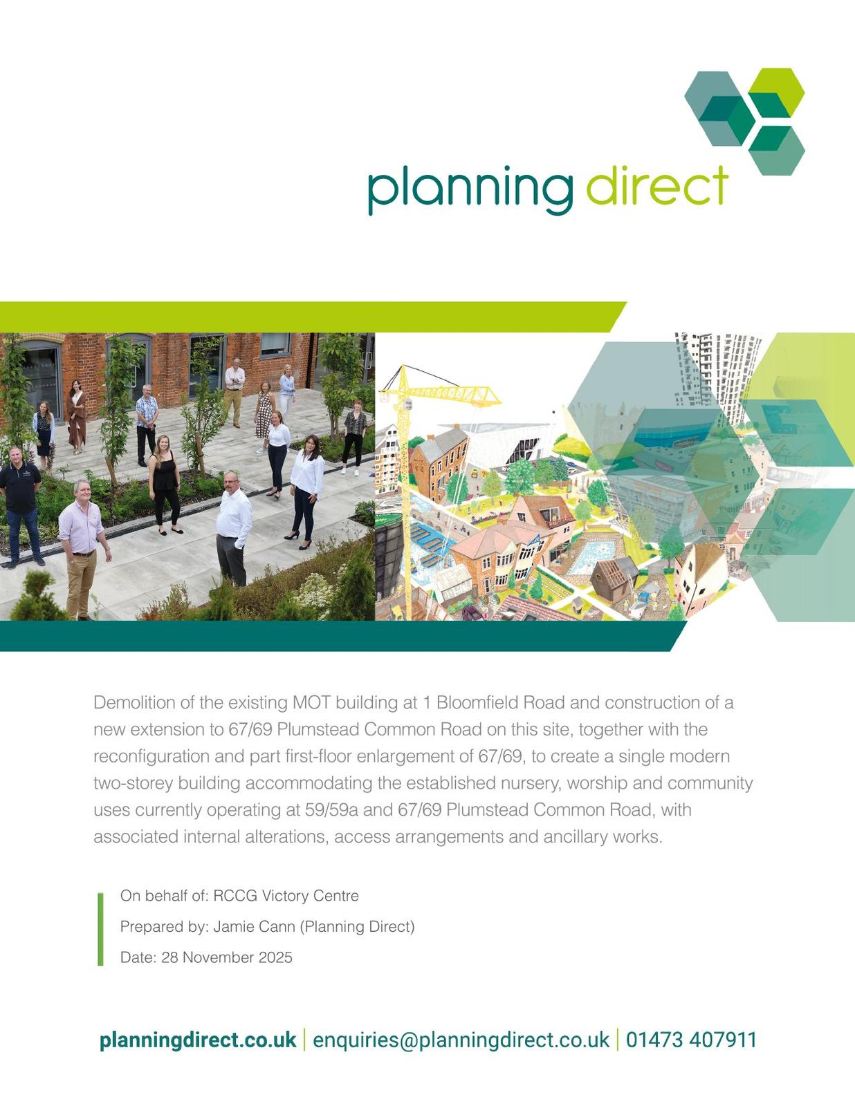 'Demolition of the existing MOT test centre building at 1 Bloomfield Road and the construction of a two-storey rear extension together with an upward extension to Nos. 67/69 Plumstead Common Road, to enable the reconfiguration and enlargement of the existing children's nursery to improve its functionality, and to provide a new place of worship and community centre, including associated internal and external alterations, access arrangements and ancillary works.' (Reconsultation)(Revised description).
