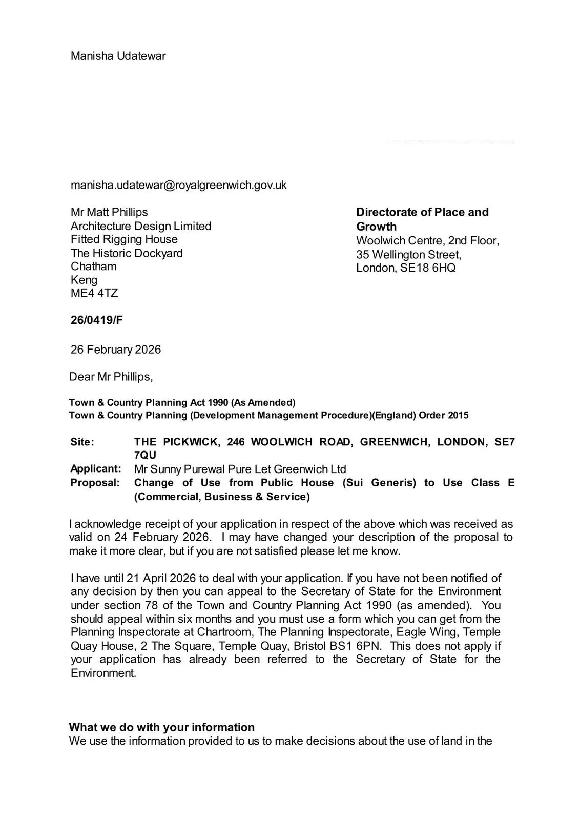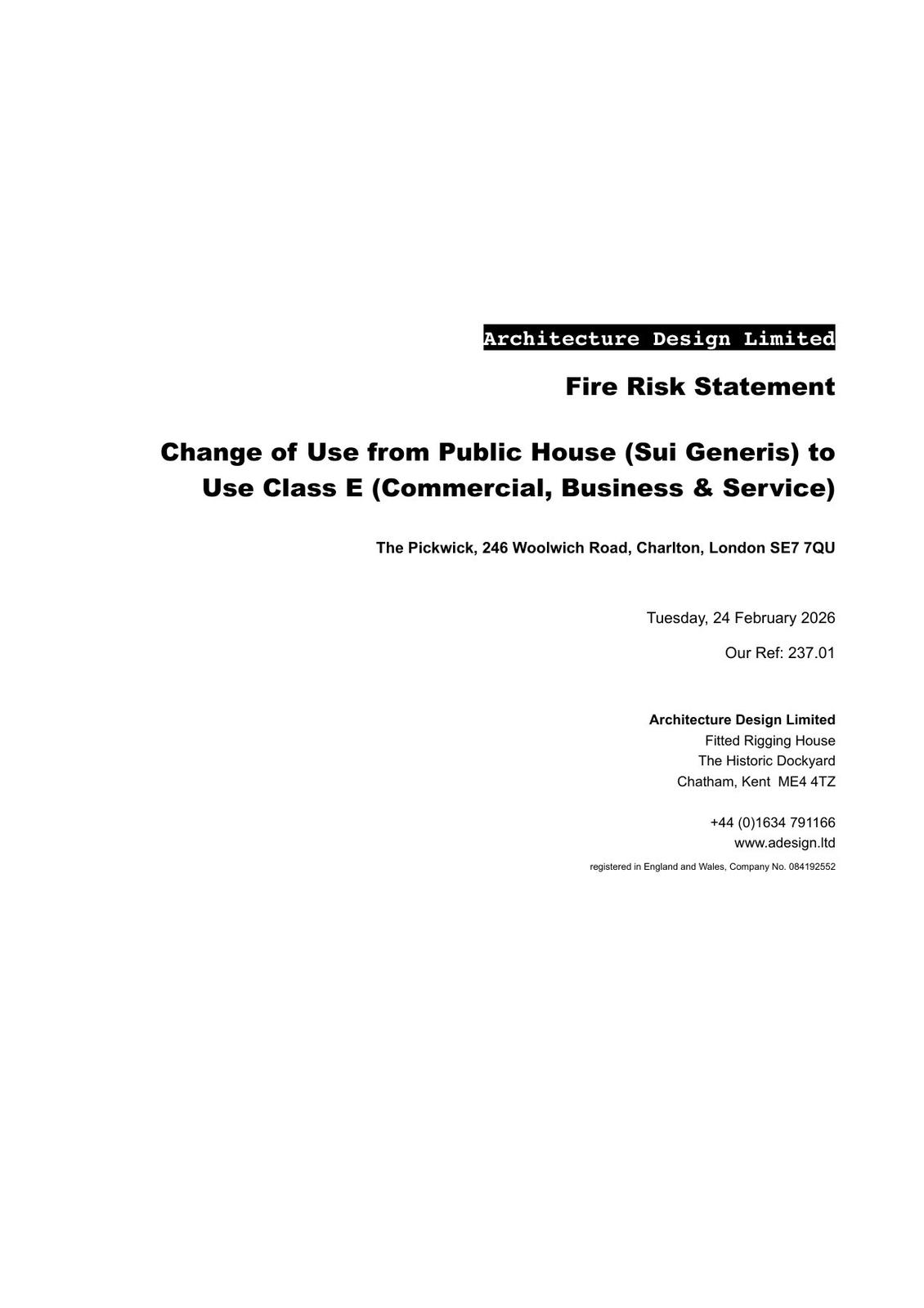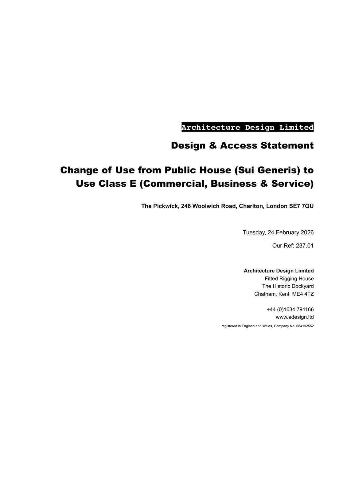 Change of Use from Public House (Sui Generis) to Use Class E (Commercial, Business & Service)