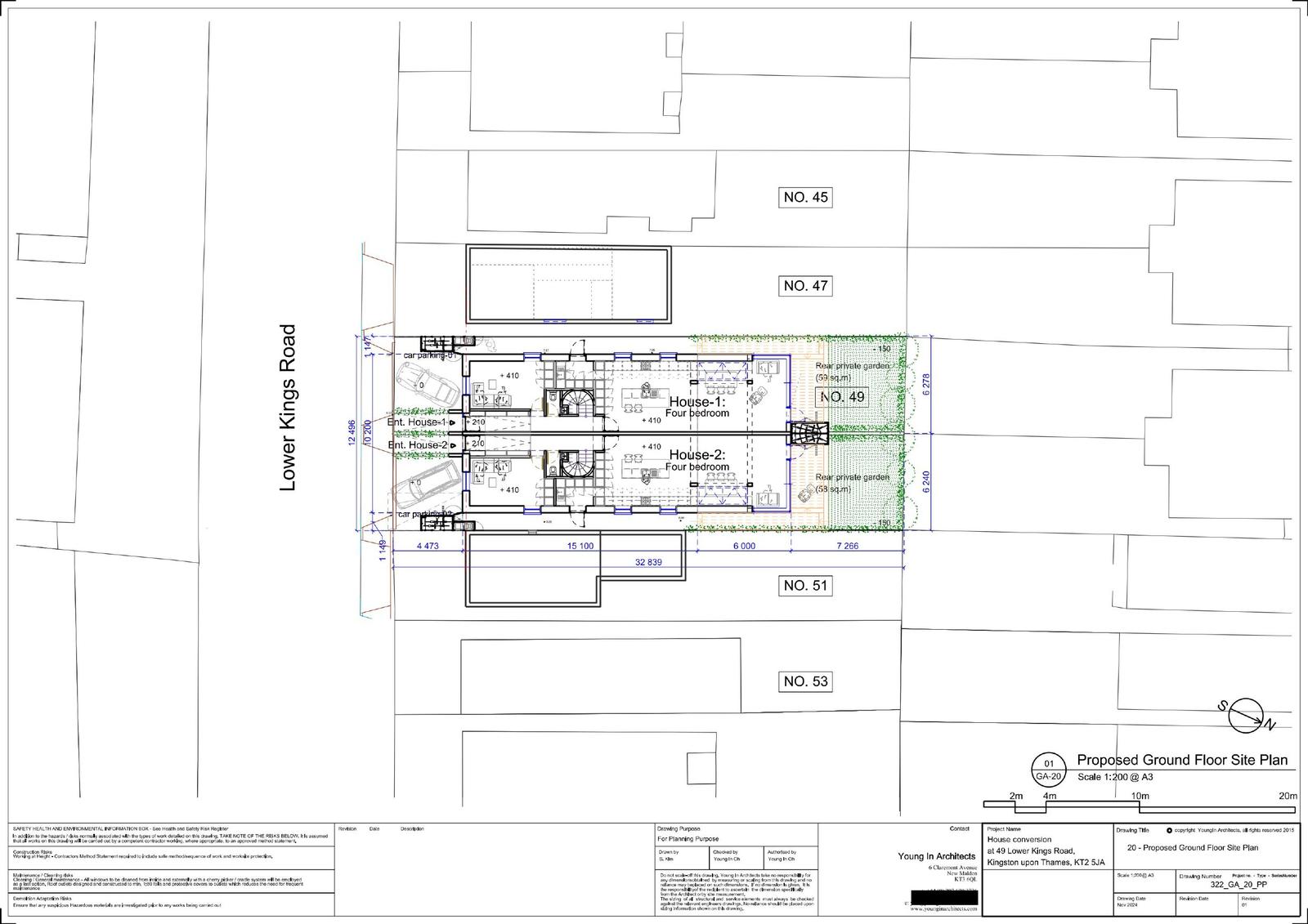 Change of use of an existing nursery to 2nos 4bed residential units. Alterations to front entrance, erection of single storey rear and first floor rear extensions. Roof extension with 4nos side dormers and 8nos side rooflights to facilitate loft conversion. With associated parking to the front of the site, private amenity space, cycle and refuse stores.