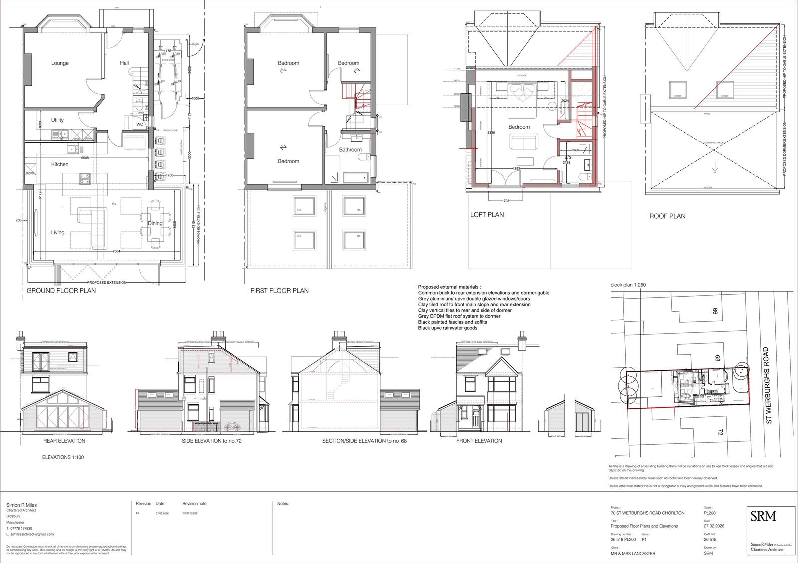 Erection of a single-storey rear extension following demolition of existing kitchen outrigger, a single-storey side extension, rear rooftop extension together with a hip to gable roof extension and installation of front rooflights.