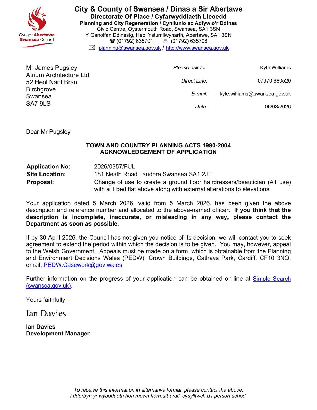 Llythyr Cydnabyddiaeth -Acknowledgement Letter