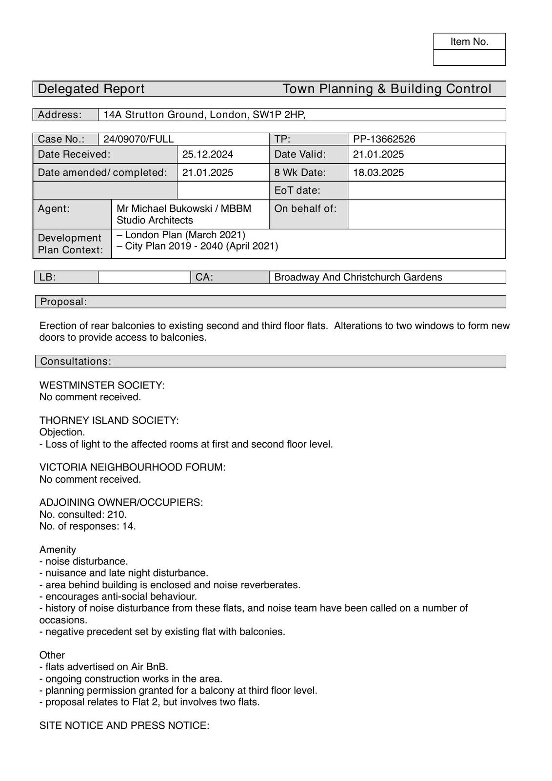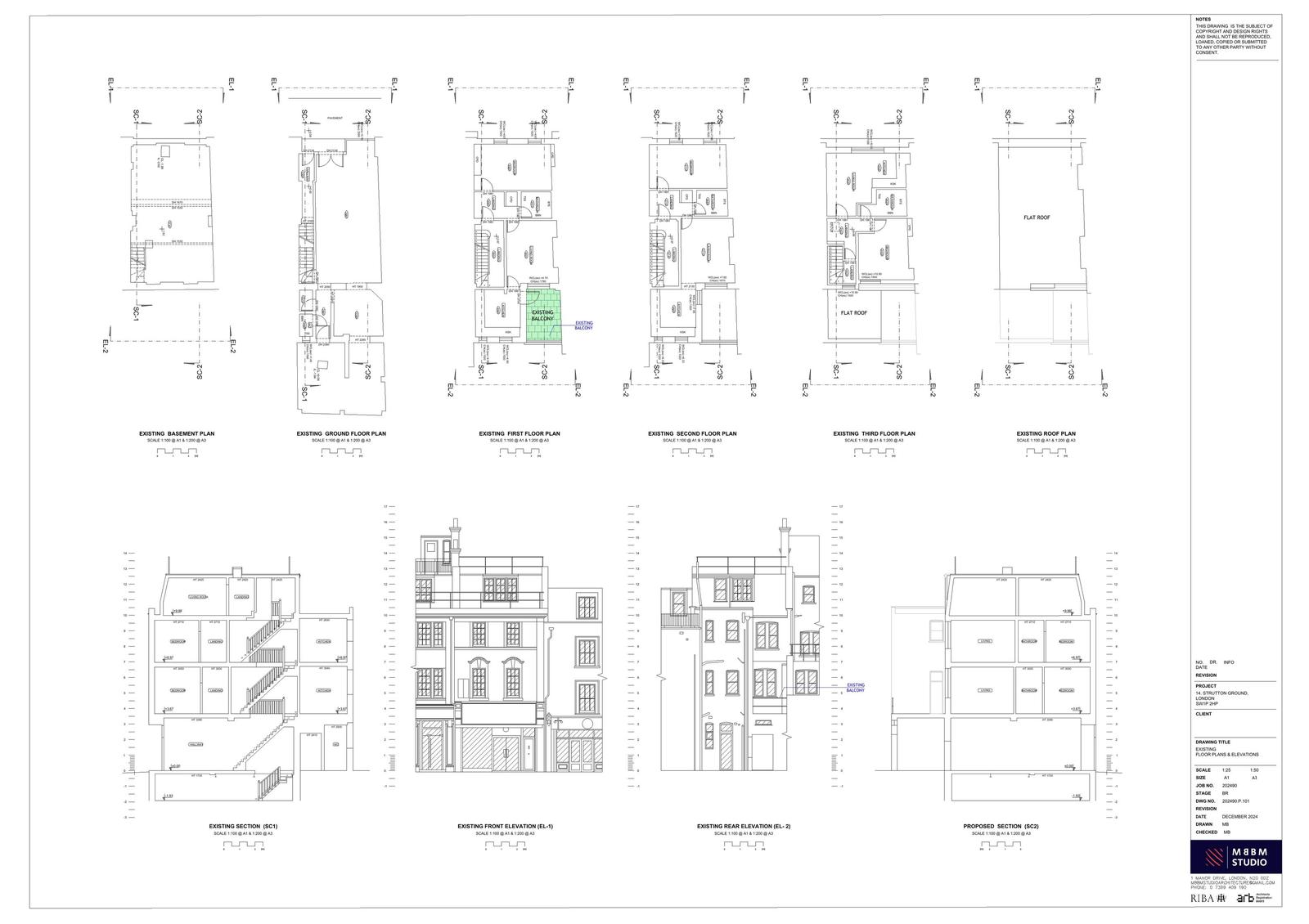 Erect rear balconies to second and third floor flats and alter two windows to form balcony doors.