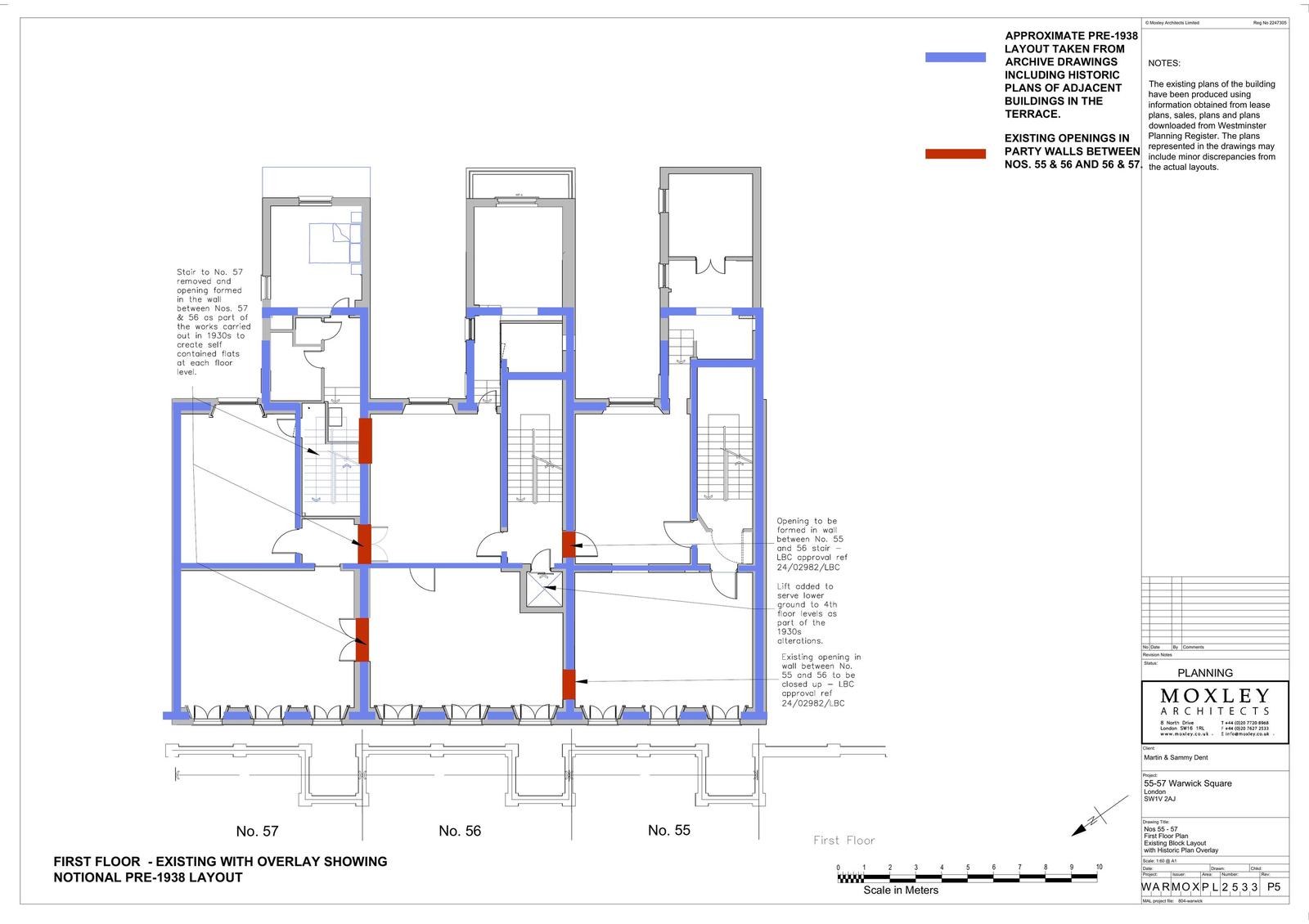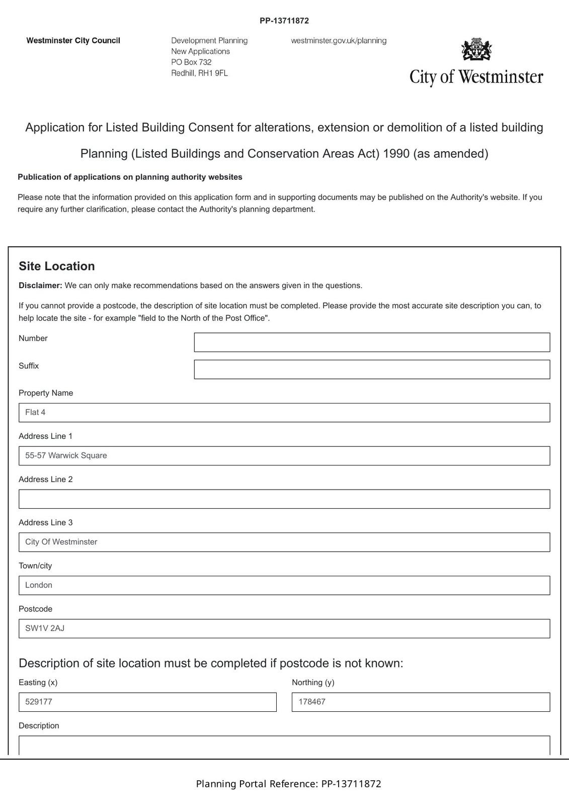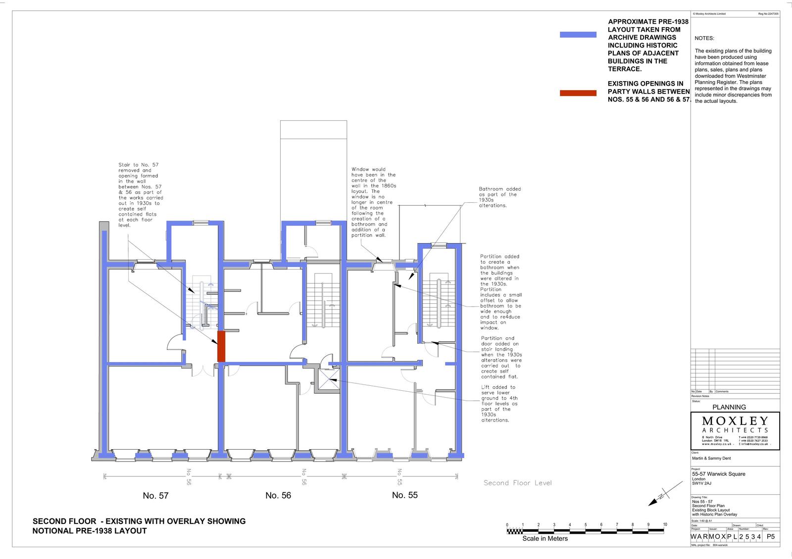 Internal works, including the creation of a new party wall opening and doorway at second floor level to connect Flat 4, 55 Warwick Square with the communal staircase and lift in 56 Warwick Square and the installation of partitions within Flat 4 to create a new hallway/ fire lobby in the rear room.