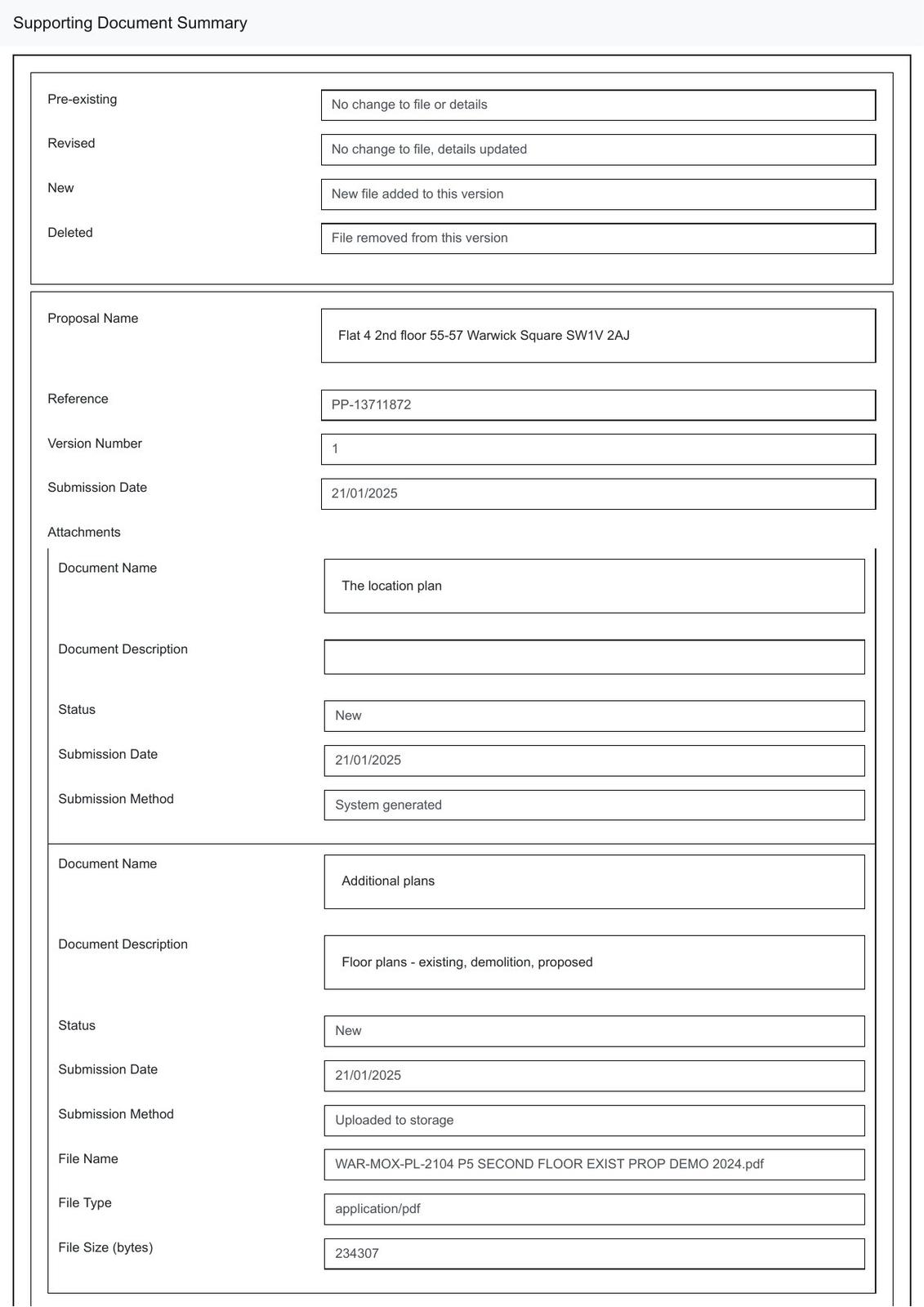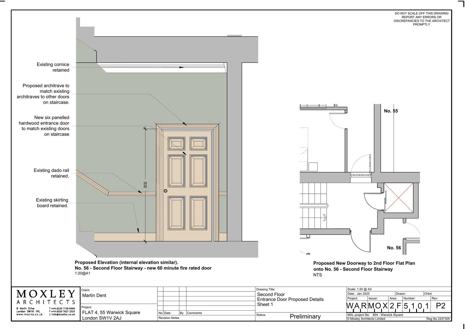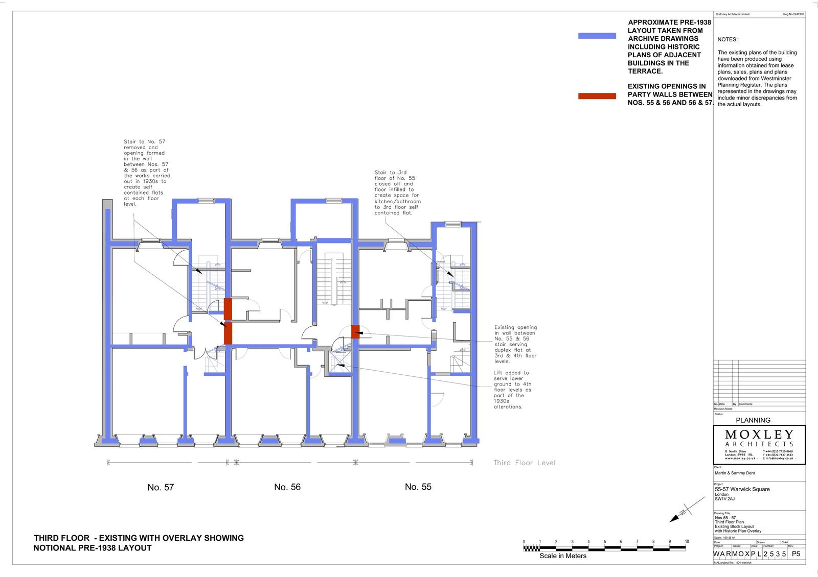 Internal works, including the creation of a new party wall opening and doorway at second floor level to connect Flat 4, 55 Warwick Square with the communal staircase and lift in 56 Warwick Square and the installation of partitions within Flat 4 to create a new hallway/ fire lobby in the rear room.